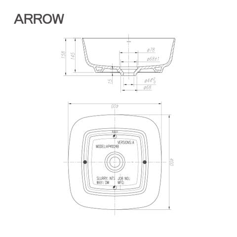 Chậu lavabo đặt bàn sứ thiết kế đẹp Arrow AP41024B sở hữu các thông số kỹ thuật tiêu chuẩn, đảm bảo tính tiện nghi và thẩm mỹ tối ưu cho không gian phòng tắm: