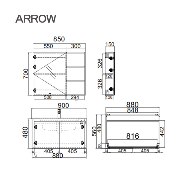 | Tủ gương | Kích thước: 850 x 150 x 700 mm; Chất liệu: Gương bạc + Gỗ Plywood; Tích hợp LED cảm biến, khoang chứa đồ tiện ích |