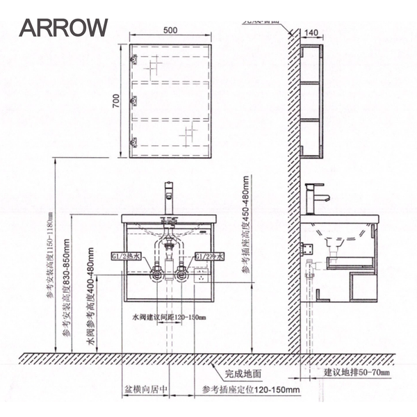 Bộ Tủ Lavabo Arrow ADGU9G3259-F/AP3259 và Tủ Gương Arrow AMJU9G3259-F – Phong Cách Kaijie V Thanh Lịch, Tối Giản