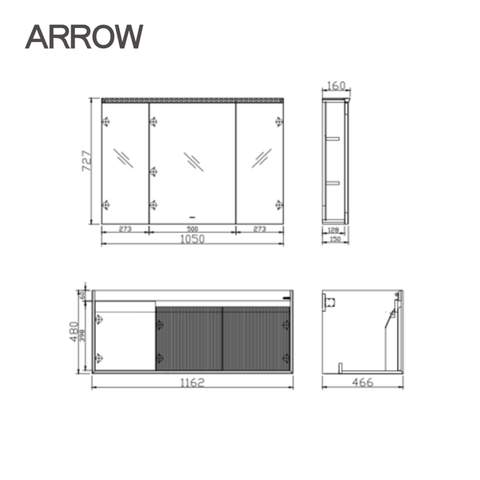 | Tủ gương | 1050 × 160 × 727 mm; Gương bạc 6 lớp, khung Plywood, tích hợp đèn LED hiện đại |