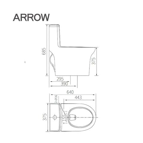 Bồn cầu một khối Arrow AE1185UM/PG011-ZPA sở hữu thiết kế gọn gàng với kích thước 640 x 375 x 685mm, phù hợp với nhiều không gian phòng tắm từ chung cư hiện đại đến nhà phố và biệt thự. Thiết kế nguyên khối liền mạch mang lại sự tinh tế, hạn chế khe hở, giúp vệ sinh dễ dàng hơn và duy trì sự sạch sẽ lâu dài.