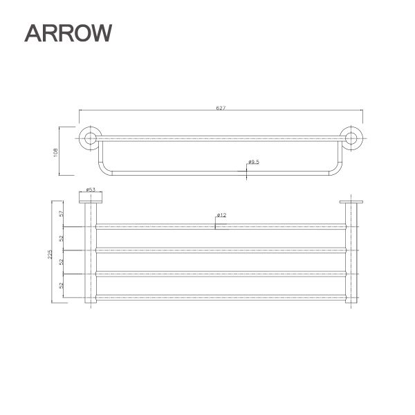 Thiết kế kích thước 627×225×108mm, vừa vặn cho mọi không gian – từ phòng tắm gia đình đến khách sạn, resort cao cấp. Arrow AG52093PN không chỉ giúp sắp xếp khăn gọn gàng, mà còn tăng tính thẩm mỹ cho toàn bộ không gian nội thất.