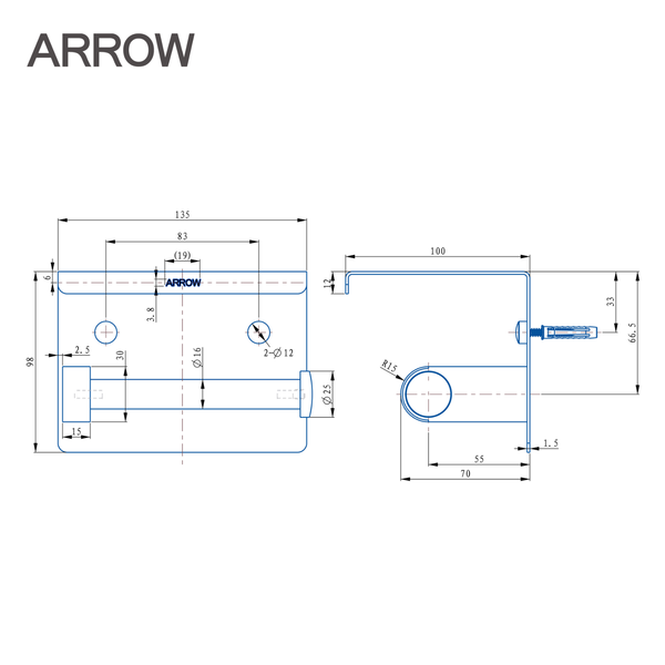 Hộp đựng giấy vệ sinh Arrow AGJ2507SM là dòng phụ kiện cao cấp được thiết kế tinh xảo từ thương hiệu Arrow, nổi tiếng với các thiết bị vệ sinh bền đẹp và tiện nghi. Sản phẩm mang màu crom bạc sáng bóng, phù hợp với mọi không gian phòng tắm hiện đại, từ nhà ở đến khách sạn, văn phòng.