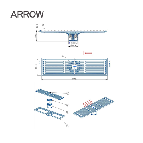Phễu thoát sàn Arrow ADL50T20-300CP – Thiết kế dài sang trọng, thoát nước nhanh và ngăn mùi hiệu quả