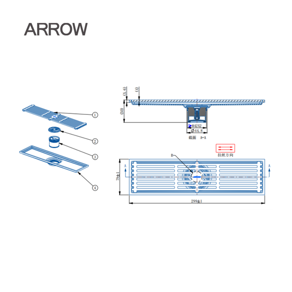 Tên sản phẩm | Phễu thoát sàn Arrow ADL50T20-300GGW |