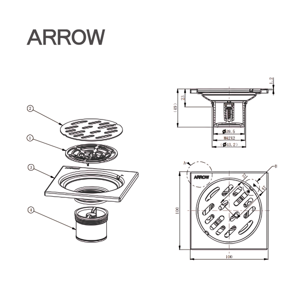 Phễu thoát sàn Arrow AF51810AMSS – Bền đẹp và ngăn mùi tối ưu