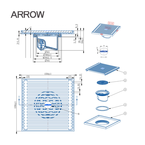 Phễu thoát sàn Arrow AHDL5122CGG là dòng sản phẩm cao cấp đến từ thương hiệu Arrow – nổi tiếng với các thiết bị vệ sinh sang trọng và bền bỉ.