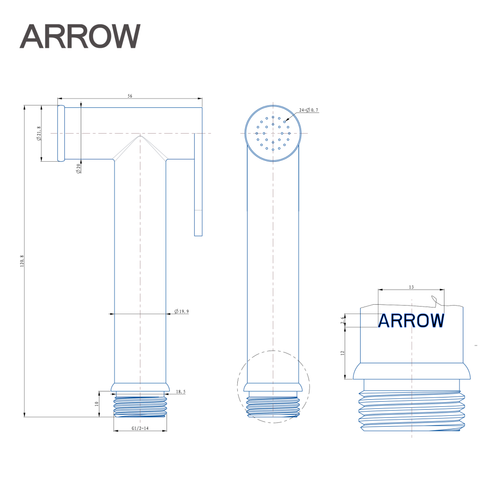 Tay cầm vòi xịt vệ sinh Arrow AHQ53002MB tương thích với đầu nối tiêu chuẩn G1/2, có thể lắp đặt dễ dàng với hầu hết các loại dây vòi xịt hiện nay.