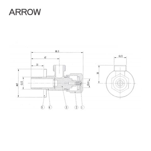 Van khóa Arrow AS022 có thiết kế đầu ra G1/2 tiêu chuẩn, dễ dàng kết nối với hầu hết các thiết bị như vòi rửa, vòi xịt, bồn rửa chén, máy giặt...