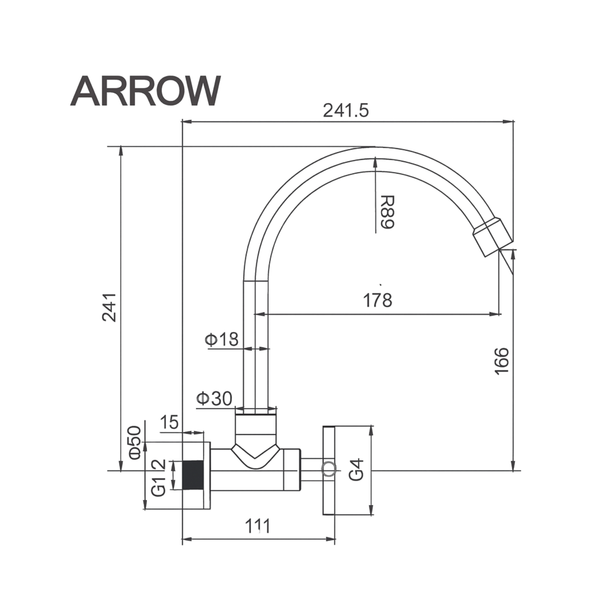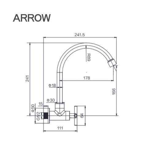 Ảnh bản vẽ kỹ thuật vòi bếp lạnh Arrow AHCY45001WCP