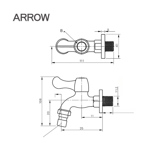 Vòi hồ lạnh Arrow AG4606CP được thiết kế dạng gắn tường nhỏ gọn, giúp tiết kiệm diện tích và dễ dàng lắp đặt ở nhiều vị trí khác nhau như sân phơi, phòng giặt, khu vệ sinh hoặc khu vực rửa ngoài trời. Kiểu dáng thanh thoát, đường nét tinh tế phù hợp với nhiều phong cách nội thất – từ hiện đại đến tối giản.