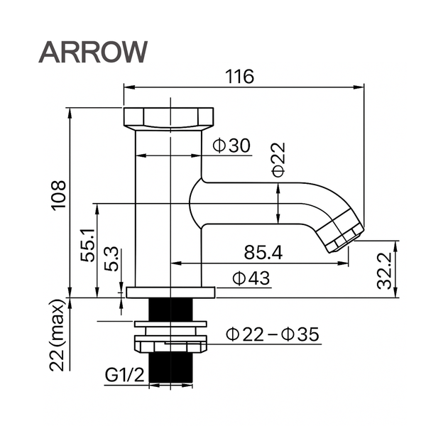 Vòi Lavabo Lạnh Arrow AHMP41003DCP – Bền bỉ với thời gian, sáng bóng từng chi tiết