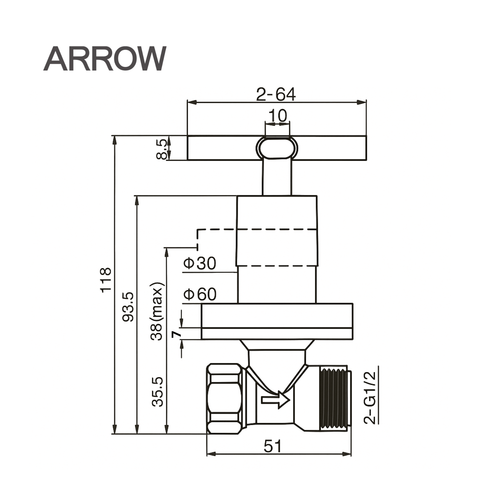 Ảnh bảng vẽ thiết kế vòi lavabo lạnh Arrow AHRQ37001MCP