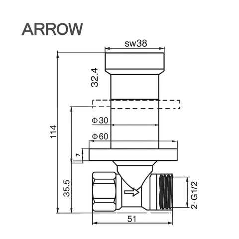 Ảnh bản vẽ kỹ thuật vòi lavabo lạnh Arrow AHRQ37003MCP