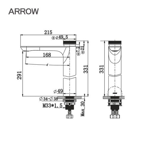 | Dòng sản phẩm | Vòi rửa tay lavabo nóng lạnh Arrow |