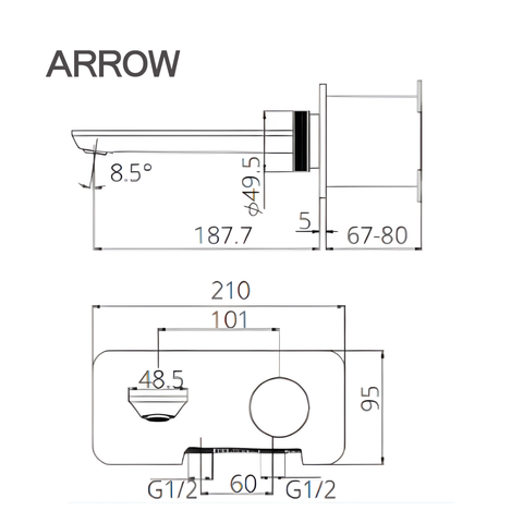 Thông số kỹ thuật - vòi lavabo nóng lạnh Arrow ARM12872BC