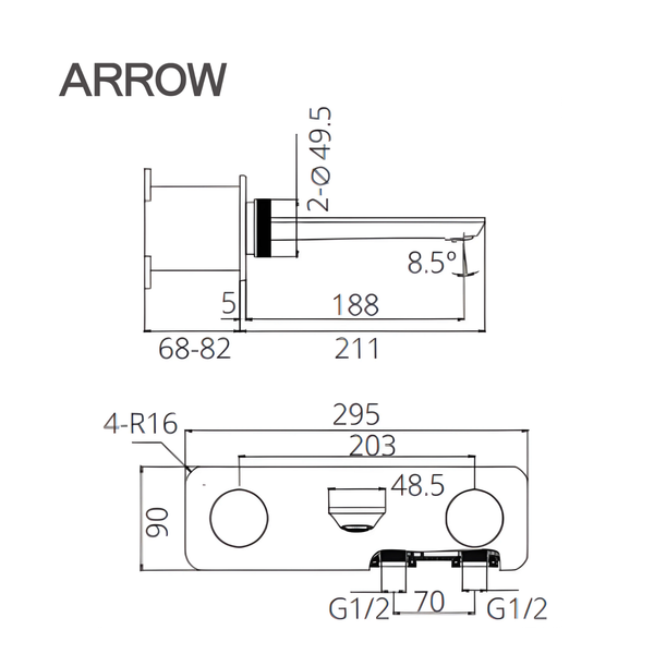 Ảnh bản vẽ thiết kế vòi lavabo nóng lạnh Arrow ARM23872GG