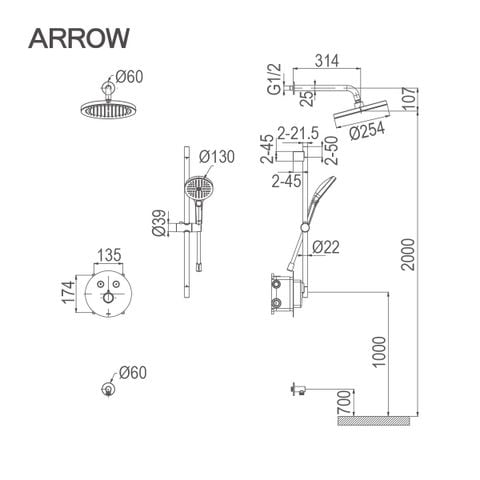 | Tên sản phẩm | Vòi sen âm tường nóng lạnh Arrow ARQ12H852AU1MB-1 |