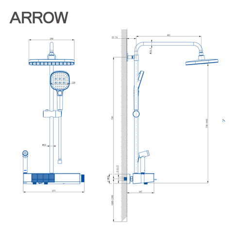Ảnh bản vẽ kỹ thuật vòi sen nóng lạn Arrow AMG14S879SGGP