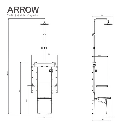 | Tính năng chính | Ghế ngồi gập gọn, tay vịn an toàn, phun vai massage, vòi sen tay, điều chỉnh nhiệt độ tự động |